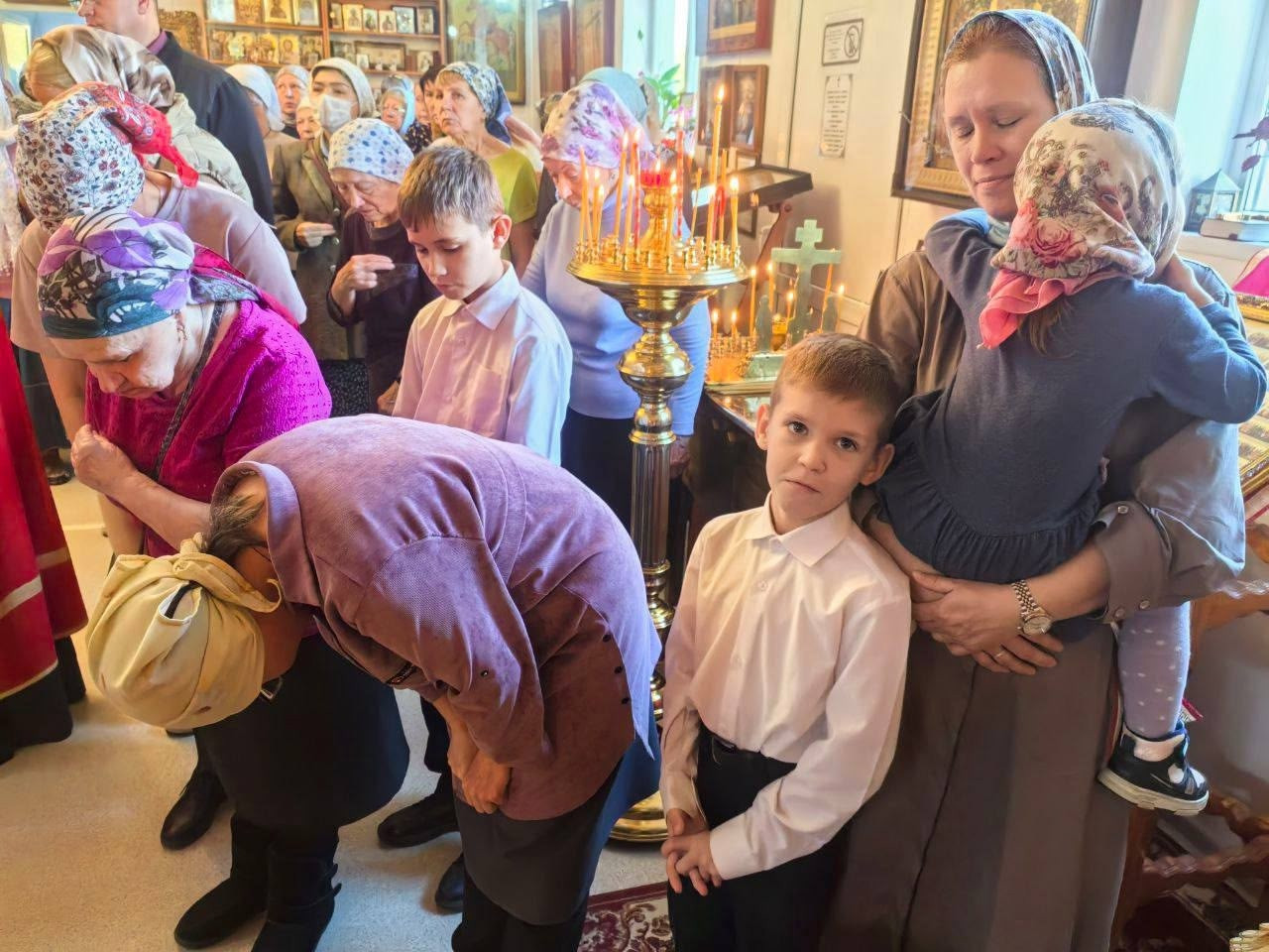 По благословению Святейшего Патриарха Московского и всея Руси Кирилла на сугубой ектении были вознесены особые прошения и молитва о Святой Руси. Проповедь перед причастием произнес иерей Алексей Шаталов. Молитвенные песнопения исполнил архиерейский молодёжный хор кафедрального собора Казанской иконы Божией Матери города Читы, под руководством Татьяны Александровны Медведевой. По окончании Божественной литургии был совершен крестный ход вокруг храма, после архипастырь с духовенством и прихожанами совершили славление Кресту Господню.